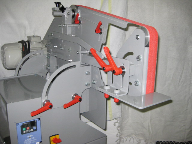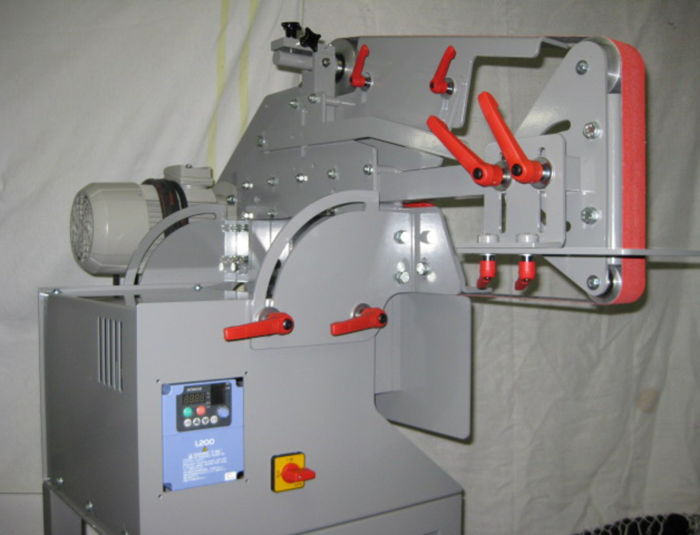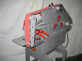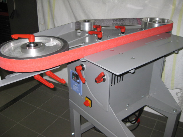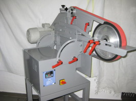Wir sind Hersteller von Qualitäts Bandschleifmaschinen , die abgebildete Maschine arbeitet mit einem 2,2 KW Motor und mit Hitachi Freqenzumformer, Bandlänge 50x2500mm