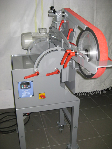 Die SMW Bandschleifmaschine mit 50x2500mm Band wir serienmäßig mit 2,2KW Motor und Hitachi Freqenzumformer ausgeliefert aber ohne Untergestell / Schnellspannhebel / Kantenschleifeinrichtung / 300mm Kontaktrad ausgeliefert.